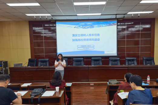 学院党委书记田虹霞做了题为《落实立德树人根本任务加强高校师德师风建设》专题宣讲。田书记从“新时代习近平有关高校师德师风建设的论述 、高校师德师风建设的基本政策、高校师德师风建设的基本路径三方面做了详细论述。她提出,全体教师要按照“四个相统一”的要求,恪守高校教师职业道德规范和职业行为准则,忠诚党的教育事业,落实立德树人根本任务,努力成为有理想信念、有道德情操、有扎实学识、有仁爱之心的四有好老师,要坚持向“标准看齐”、向“榜样看齐”、做“大学问”、怀“大爱心”,争做新时代“大先生”。
