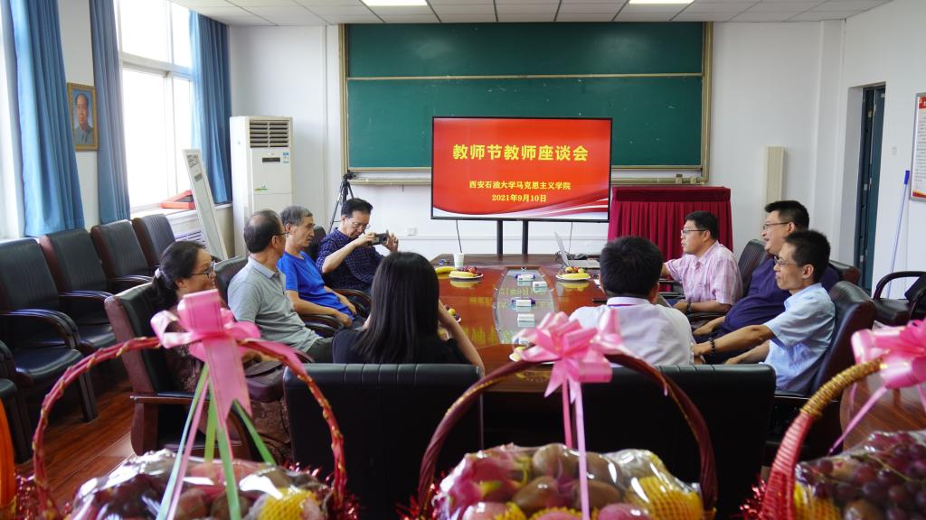 会后,马克思主义学院邀请近几年退休的5位老教师在1号教学楼818会议室召开了教师节教师座谈会,学院领导班子、工会主席、在职教师代表共10余人参加了会议。座谈会上,学院领导班子祝老教师教师节快乐,对他们为学院发展做出的贡献表示感谢,希望他们身体健康,生活幸福。与会老教师对马克思主义学院年轻一届领导班子带领学院蒸蒸日上取得的工作成绩表示祝贺,感谢学院在教师节这个特殊的日子以座谈会的形式对退休老教师的关心,表示会继续发挥余热,并祝愿马克思主义学院越来越好!