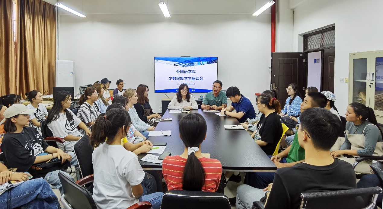 为进一步加强与少数民族学生的沟通和交流,全面了解学院少数民族学生学习、生活情况,不断提升少数民族学生教育管理服务水平,9月8日下午,外国语学院在崇文楼316会议室组织召开了少数民族学生座谈会。院党委书记田虹霞、全体学工干部及少数民族学生参加会议。会议由院党委副书记王业青主持。