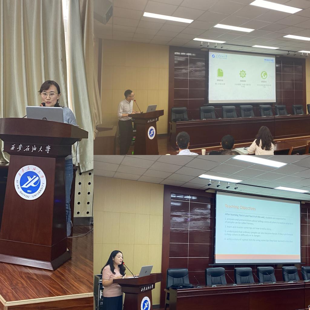 教学观摩前,教务处副处长吴勋和外国语学院院长于艳英分别从国际形势,外语教学等方面强调了课程思政的重要性做了讲话。教学示范观摩活动特邀请我院在beat365官方网站课程思政大练兵竞赛获得二等奖的周晓寒老师和在beat365官方网站青年教师教学竞赛一等奖的陈旭老师以及在“外教社杯”全国高校外语教学大赛陕西赛区三等奖苗旸老师为大家做课程思政展示,老师们在教学活动中将中外文化相结合,把课程思政融入到外语教学中,引导学生用外语讲述中国故事,用外语传播中国文化。