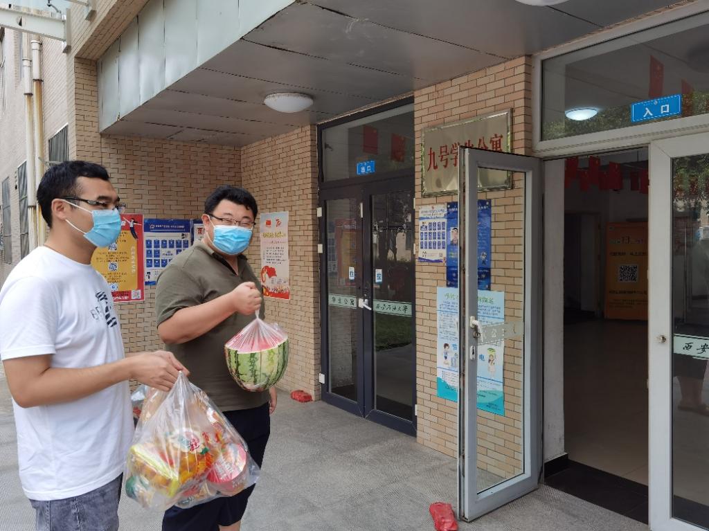 8月5日,学院党委副书记刘冰在鄠邑校区看望留校参加残特奥会开闭幕式演出排练的学生,校团委残特奥会群演带队老师史阳,2020级辅导员、群演带队老师马舒宇及辅导员刘思文参加。在炎炎夏日,同学们克服重重困难、精神饱满、坚持排练,为力争举办一届高水平的赛事做出贡献。刘冰副书记代表学院向学生代表送去西瓜等慰问品,希望同学们认真排练、注意休息、全面展示出机械学子不畏艰难、敢为人先的精神风貌。随后,刘冰副书记一行向因配合疫情防控在宿舍进行自我隔离的同学送上了食品、生活必需品等,感谢隔离的同学能够积极配合学校的防疫工作。
