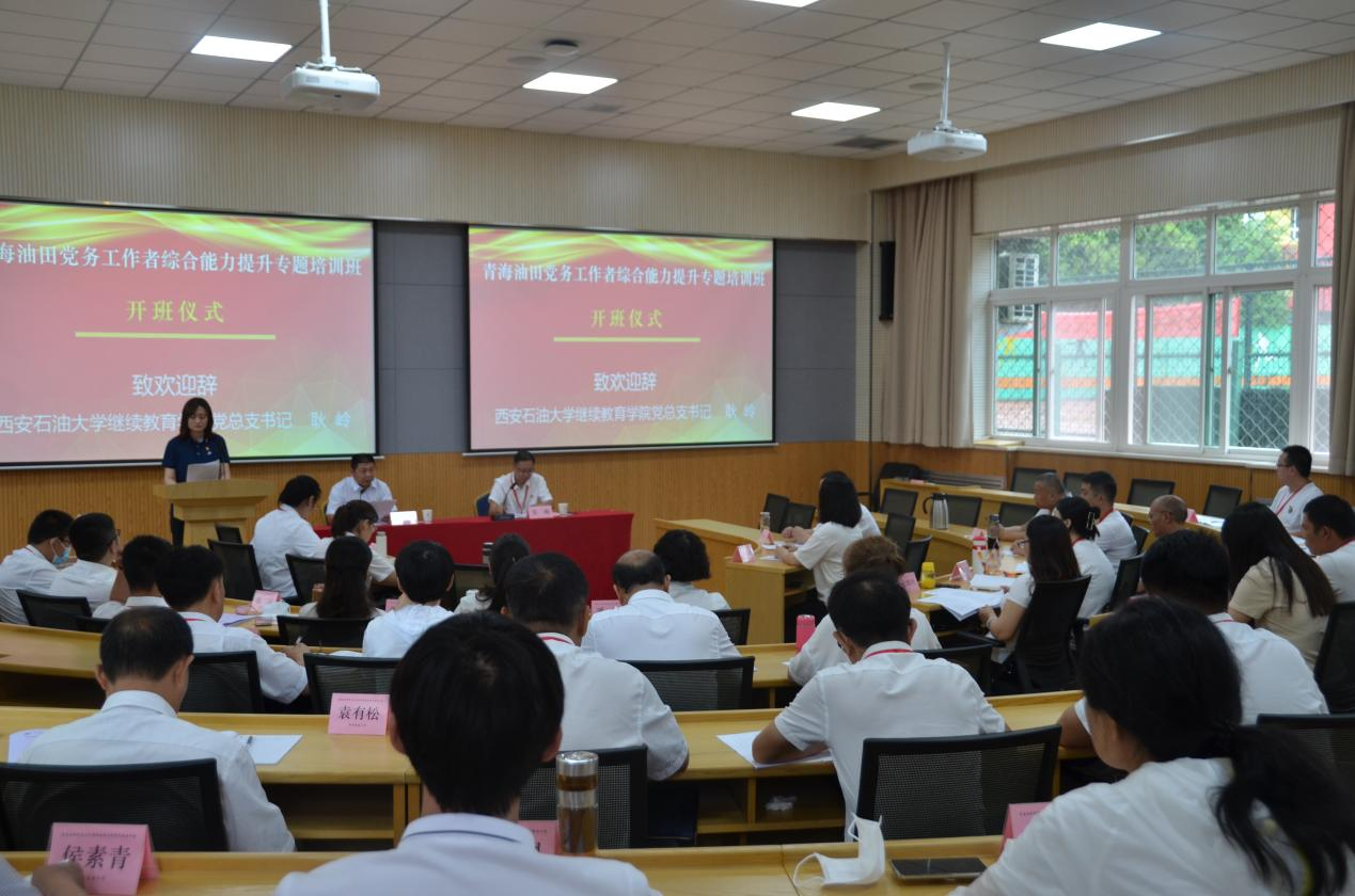 7月26日上午,青海油田党务工作者综合能力提升专题培训班在beat365明德校区顺利开班。来自青海油田消防支队(武装部、保卫部)、采油四厂、物资装备公司和勘探事业部等四家单位的46位党务工作者参加培训。青海油田公司第二派驻纪检组副组长吴海和beat365官方网站继续教育学院党总支书记耿岭参加了开班仪式。仪式由班主任刘晓曦主持。