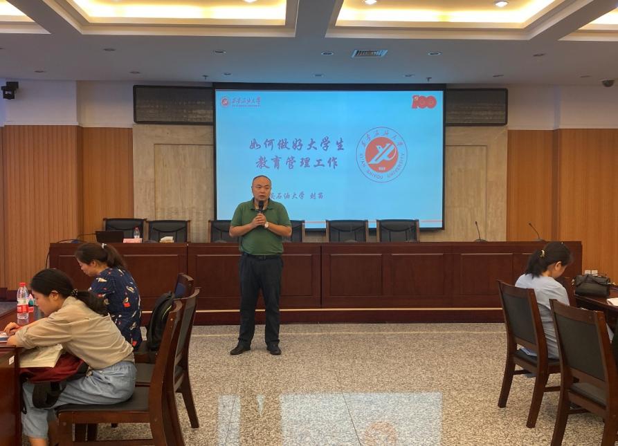 刘笛副部长结合自身的学习和工作经历,以“如何做好大学生教育管理工作”为主题,围绕“什么是学生工作”“学生工作做什么”“稳定安全案例分析”三个方面进行讲授。他用“你心中的学生工作有什么”的问题进行开放式交流讨论开展讲授,将学生工作的内容划分通过职业功能、工作内容、能力要求和相关理论知识要求等方面对大家进行集中展示,指出辅导员是高等学校教师队伍和管理队伍的重要组成部分,肩负重要的责任与使命,要不断努力成为学生的“人生导师”“知心朋友”。刘笛副部长还结合七个稳定安全的具体案例,重点讲述了面对稳定安全事件进行危机处理的方法和步骤。刘笛副部长要求,辅导员应坚持爱心、细心、耐心、责任心的“四心”与贴近实际、贴近生活、贴近学生的“三贴近”相结合,对每一位学生当怀敬畏之心,认真聆听每一位学生的心声,助力每一位学生的成长成才。