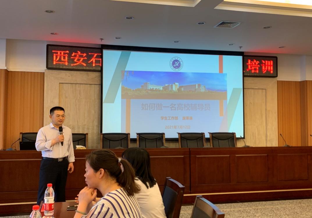 为深入贯彻落实全国高校思想政治教育工作会议精神,进一步强化辅导员素质能力提升,加强思想政治教育和管理水平,帮助辅导员特别是新入职、新转入辅导员更快进入工作角色,7月12至13日,学生工作部(处)在鄠邑校区图书馆第一会议室举办2021年辅导员培训交流研讨会。学生工作部(处)副部长庞秉谦、刘笛分别担任主讲,各院系近三年入职、转入辅导员38人参加了本次培训。