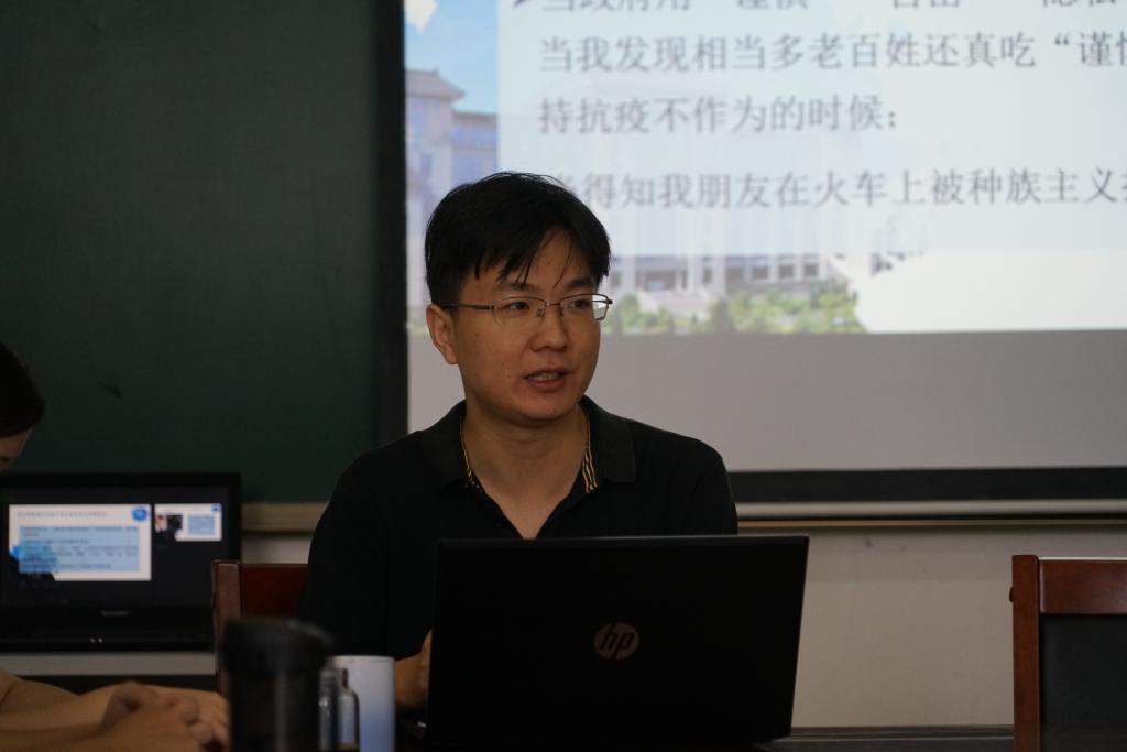 李孝祥老师首先强调了筑牢高校意识形态阵地的重要性与紧迫性,指出强力筑牢意识形态工作前沿阵地是一项战略工程、固本工程、铸魂工程,事关全面贯彻党的教育方针,事关中国特色社会主义事业后继有人。接着,李老师从坚定“四个自信”牢牢把握意识形态工作的主动权入手,以近期西方媒体的部分不实报道为例,向大家澄清报道中的矛盾与错误。针对西方媒体对中国疫苗等问题的无端指责,李老师列举事例,阐明我国坚持“人民至上、生命至上”原则,积极推动构建人类卫生健康共同体的大国担当。最后,李老师鼓励党员师生发挥先锋模范作用,敢于斗争、敢于胜利,主动澄清模糊认识、划清是非界限,努力成长为又红又专、德才兼备、全面发展的中国特色社会主义合格建设者和可靠接班人。