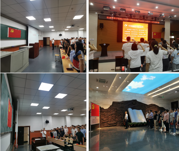 7月1日,经济管理学院党委组织部分师生党员面向党旗,重温了入党誓词,受到了一次深刻的党性教育,再次表达了每一名党员对党的赤诚忠心和为共产主义事业奋斗终生的坚定决心。入党誓词就是座右铭,是行动指南,它表明了一个共产党员为实现自己人生最高价值所做出的无悔选择。重温入党誓词,牢记入党誓词,就是要让大家不忘自己的承诺,在日常学习、工作和生活中都要对照检查自己的一言一行。