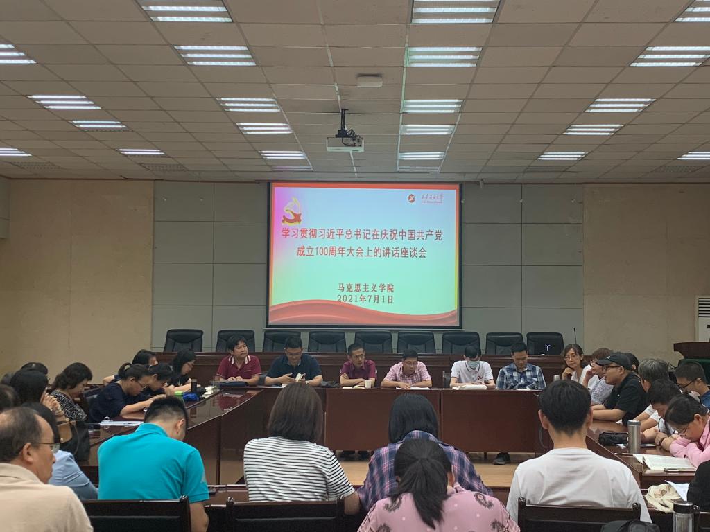 7月1日上午,庆祝中国共产党成立100周年大会在北京天安门广场隆重举行。马克思主义学院师生分别在雁塔校区第三会议室、鄠邑校区崇文楼325会议室集中收听了习近平总书记在庆祝中国共产党成立100周年大会上的重要讲话并展开热烈讨论,热烈庆祝中国共产党百年华诞,并纷纷表达了自己内心真挚的情感。