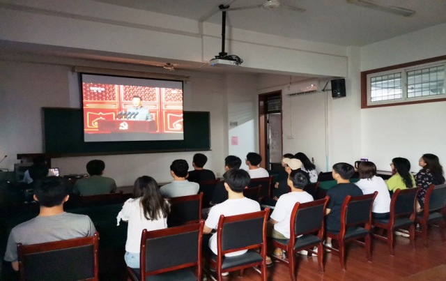 7个学生党支部、200余名本科学生党员代表在鄠邑校区B112教室进行了集中观看;6个教工党支部、20余名教工党员代表在雁塔校区1#607会议室进行了集中观看;5个研究生党支部、30余名研究生党员代表在雁塔校区1#603会议室进行了集中观看;部分师生代表30余人还在鄠邑校区弘石报告厅、雁塔校区学术报告厅进行了观看。