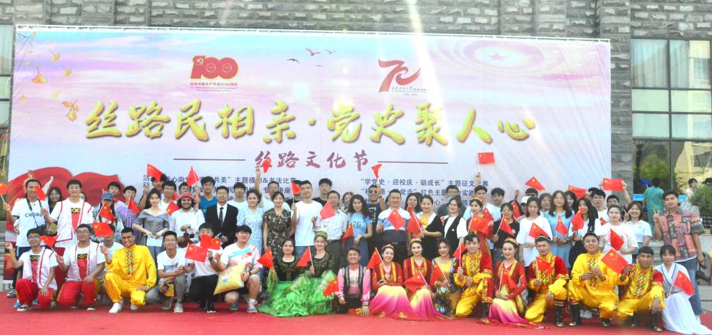 文化路演活动包括特色展示、党史知识问答和文艺表演三部分。在特色展示部分,现场展出了书法、摄影、征文等获奖作品,展示了各民族特色美食和服饰,让大家在品尝美食、试穿服饰的过程中,感受中华文化的博大精深和民族文化的源远流长。在党史知识问答部分,将建党100周年、建校70周年、第十四届全运会、抗疫精神、校史校情、文化常识等内容融入题目,让大家在轻松的氛围中得到知识的滋养。文艺表演在国风舞《烟雨行舟》中拉开序幕,维吾尔族舞蹈《石榴花开》引爆全场气氛,俄罗斯留学生的吉他弹唱《布谷鸟》和舞蹈《卡琳卡》让异域风情扑面而来,古典舞《缘起》用娴熟的肢体语言演绎悲喜人生,民谣社弹唱的《小永远》为现场带来了甜甜的青春气息,安塞腰鼓《火红旋风》将陕北人直爽而热情的性格表现得淋漓尽致······路演活动在《没有共产党就没有新中国》《我和我的祖国》的师生合唱中圆满结束。