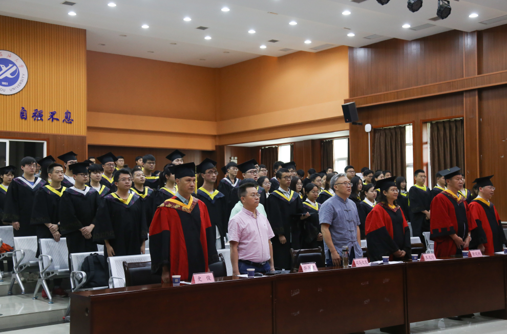 随后,学士学位授予正式开始。化学化工学院教授委员会宋绍富教授、院长王文珍教授为100余名毕业生代表正冠拨苏、颁发学位证并合影留念。学士学位授予仪式在雄壮的校歌声中结束。