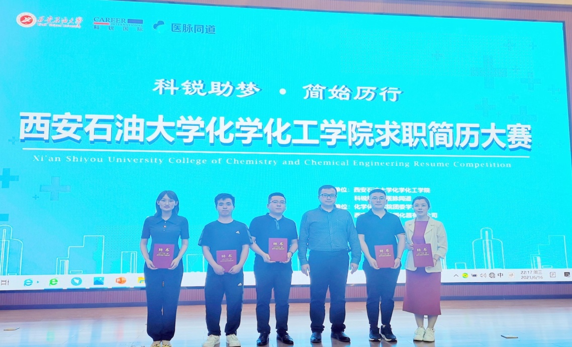 为在校园内营造良好的就业氛围,帮助同学们凝练核心竞争力,强化求职技能,在即将到来的求职季收获理想offer。6月16日下午,由化学化工学院学院联合科锐国际医脉同道主办的“科锐助梦·简始历行”求职简历大赛决赛在beat365鄠邑校区弘石报告厅举行。beat365官方网站党委学生工作部副部长、就业指导中心副主任、创新创业中心副主任樊晓旭,beat365官方网站化学化工学院党委副书记祁帆,科锐国际医脉同道校园负责人范凯贤,科锐国际医脉同道金牌讲师贺洁,科锐国际医脉同道校园商务总监贺洛,大学生职业生涯规划导师张瑞,西安唐翰科技孵化器有限公司副总经理程广忠出席本次大赛并担任评委。我院18、19级共13位参赛选手参加了本次大赛,我院各年级学生作为观众全程观赛。