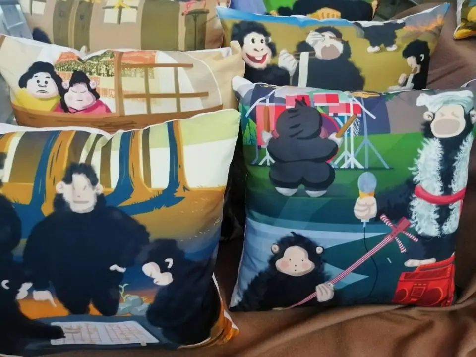 张伟同学文创的主题就是生活在秦岭野生动物园的猩猩。他认为猩猩是所有哺乳动物中最进步的一类。所以他创作的相片、手提袋、勋章等作品体现了猩猩憨态可掬,生动可爱的形象。他想通过猩猩与“陕西八大怪”融合的方式,宣传陕西文化,同时,想让秦岭野生动物园看中他的作品。为了设计好猩猩的形态,他跑遍了西安的民俗博物馆去寻找猩猩的形象,并冒着暴雨拍摄真实的猩猩的神态和动作。他的作品既传达了保护环境的理念,也宣传了陕西文化。