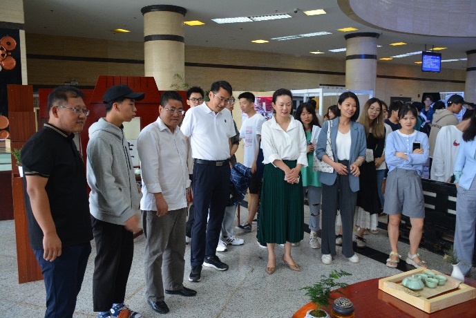 人文学院党委书记余小勇、党政办公室副主任(鄠邑校区管理办公室)黄建礼、学校图书馆副馆长孙琳、后勤管理处副处长张刊林、人文学院党委副书记盛丹、教学副院长方松林等领导莅临现场进行了参观指导,开幕式由人文学院余小勇书记主持。参展嘉宾对本次《家具与陈设》课程学生作品展予以高度评价,认为人文学院设计系学生能够结合自身专业,政治站位高、服务意识强,充分体现出“设计以人为本,设计服务人民”的核心思想。