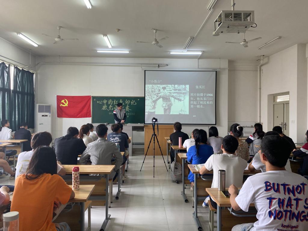 为扎实推进党史学习教育,增强广大学生党员学党史、感党恩、跟党走的思想自觉和行动自觉,切实提升学生党支部工作能力和业务水平,理学院党委于6月7日下午在鄠邑校区志远楼502举办了“心中的红色印记”微党课比赛。理学院学生工作办公室主任丁亦喆、体育系学生工作办公室主任焦龙,物理学生第一党支部书记康伟、数学学生第二党支部书记甘友斌担任评委,理学院6个学生党支部推荐的12位选手参赛,60余名学生党员全程观赛。