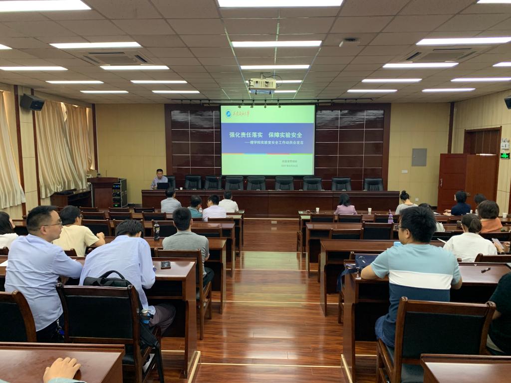 2021年5月26下午4:30,理学院邀请实验室管理处李庆本副处长进行了“强化责任落实 保障实验安全”的安全工作动员会。全院100余名教职工参加本次会议,廖敏书记主持会议。