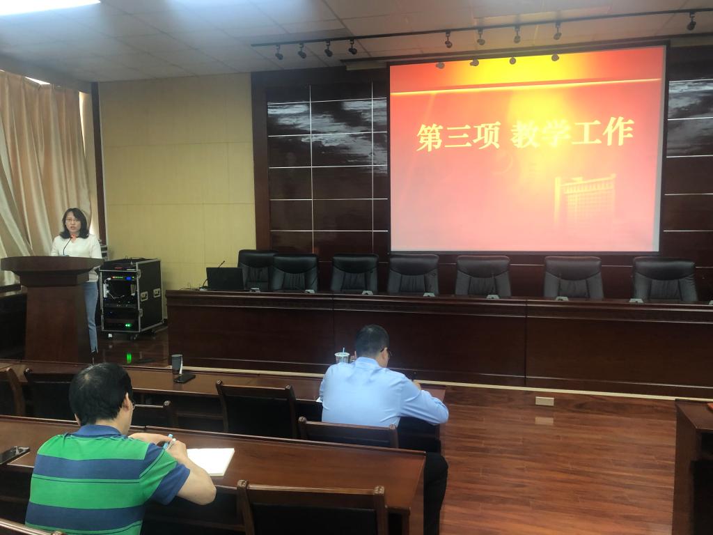 会议第二阶段进行专项工作汇报。李善建副院长从研究生培养方案修订、课程建设、教改项目、教材建设及培养环节方面介绍了研究生教育工作。苏碧云副院长介绍了学院一流专业及一流课程建设情况。祁帆副书记介绍了2017级本科生和2018级研究生就业现状及下一步的就业工作安排。同时,作为工会主席,祁帆副书记还介绍了学院教职工合唱比赛的进展情况。司马文龙书记对课程思政的有关情况进行了部署安排,希望各位老师在授课的过程中有机融入课程思政的内容,构建全过程、全方位育人的思政工作新格局。