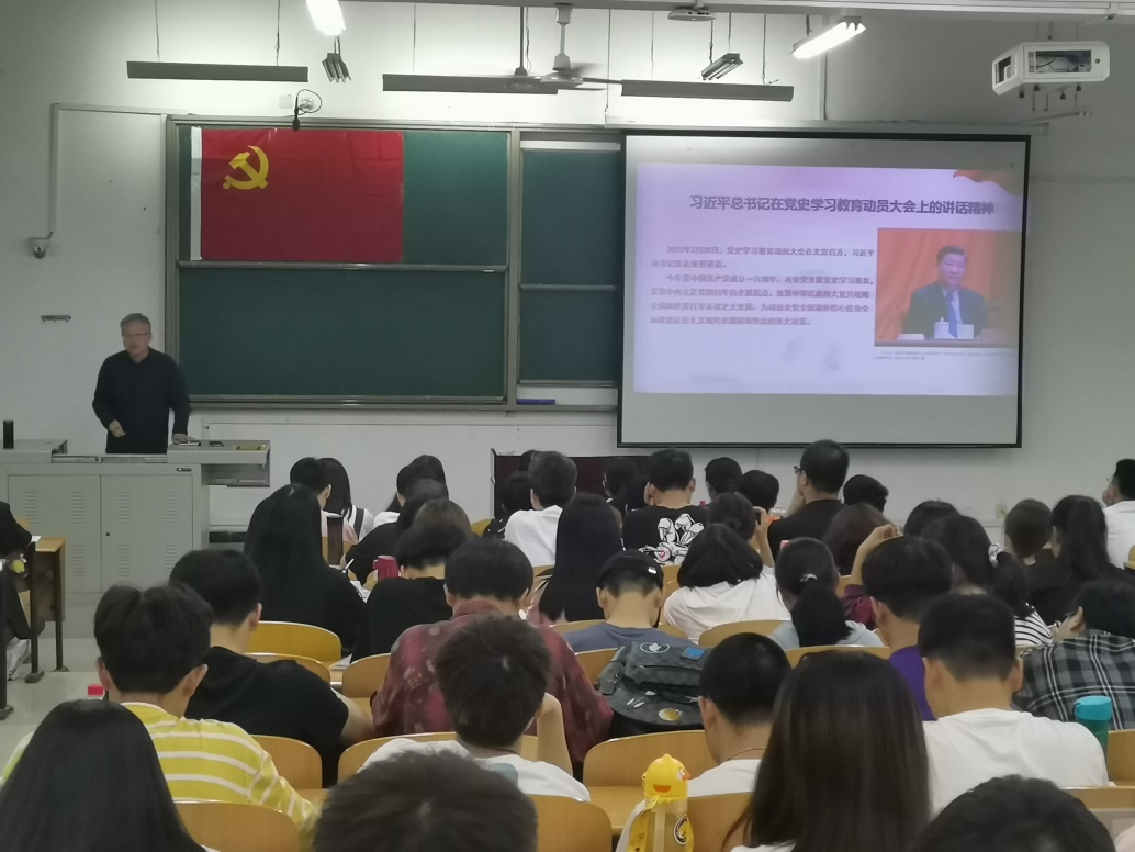 组织员李超伟老师介绍了本次培训班的基本情况、上课安排和考核办法等,宣读了培训纪律。开班典礼结束后,学院党委书记司马文龙以“学习百年党史,做新时代合格大学生”为主题的党课第一讲。司马书记为同学们辅导学习了习近平总书记在党史学习教育动员大会上的讲话精神,结合建党100周年、建校70周年和创建文明校园为同学们做了党史学习教育和爱校荣校主题思想教育,引导学生树立正确思想认识、明确奋斗目标、勇担时代重任,提高综合素质,做好疫情防控等工作,指导同学们要在学习和生活中增强责任意识,磨炼坚强意志,并发挥带头作用,提升党性修养,做新时代有为青年大学生,为创建文明校园做出自己的贡献。