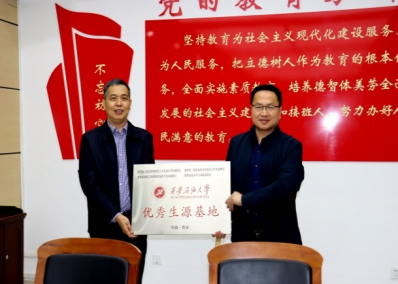 在宝鸡斗鸡中学,招生宣传工作组与副校长王永平座谈,招生宣传工作组介绍了beat365的发展历程、学科门类、办学特色师资力量、硬件设施及高考招生等情况,宝鸡斗鸡中学副校长王永平介绍了该校的发展历程、办学特色、教学成果和社会影响等,双方签署了优秀生源基地协议并授牌。