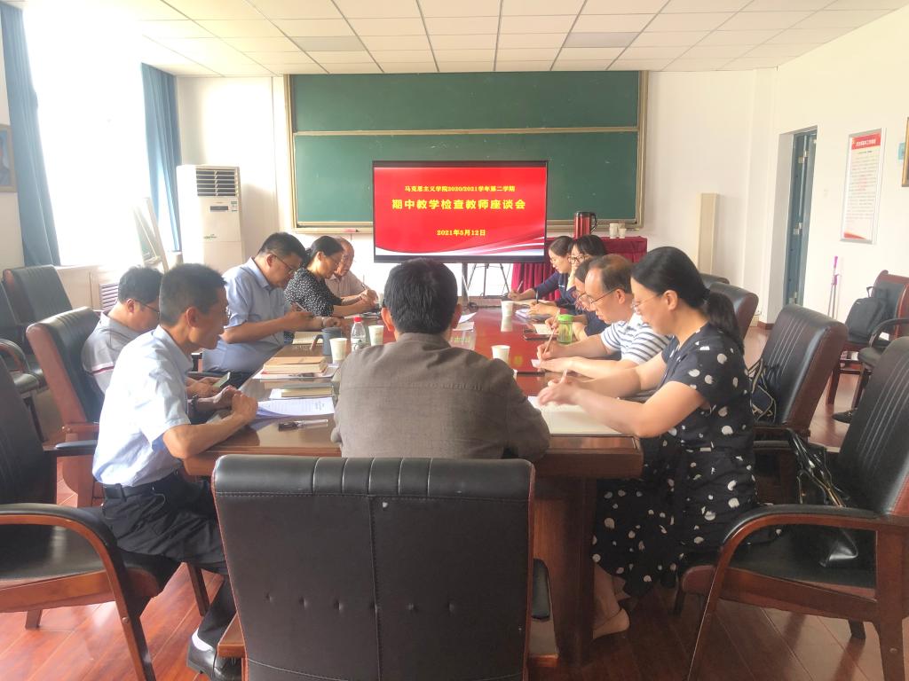 5月12日,马克思主义学院召开了2020-2021学年第二学期期中教学检查教师座谈会。学校教学督导专家张倩霞、刘昌讯和马克思主义学院督导专家张熙凤,院领导张伟、张海涛、董春诗、各教研室主任和部分教师代表参加了座谈会。