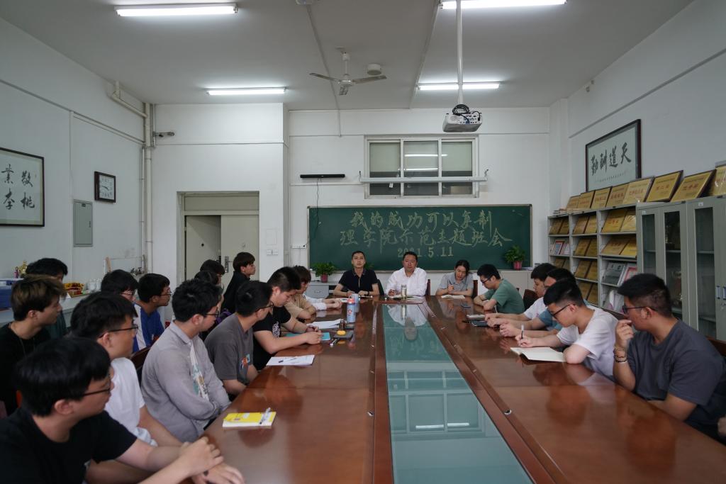 5月11日下午,理学院在鄠邑校区志远楼111会议室举办了“我的成功可以复制”示范主题班会。光电1701班考研学生代表张澳、谷子硕、龙万江、安梦迪、高诚5位同学作分享交流,光电1801班全体同学、各年级辅导员及班长参会。示范主题班会由理学院党委副书记马小刚主持。