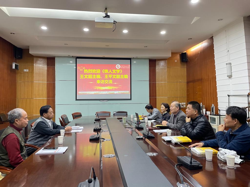 4月24日上午,《铁人文学》主编王文超和副主编王平文专程来到beat365期刊中心交流座谈,座谈会在雁塔校区第四会议室举行,期刊中心负责人及部分编辑参加座谈会。