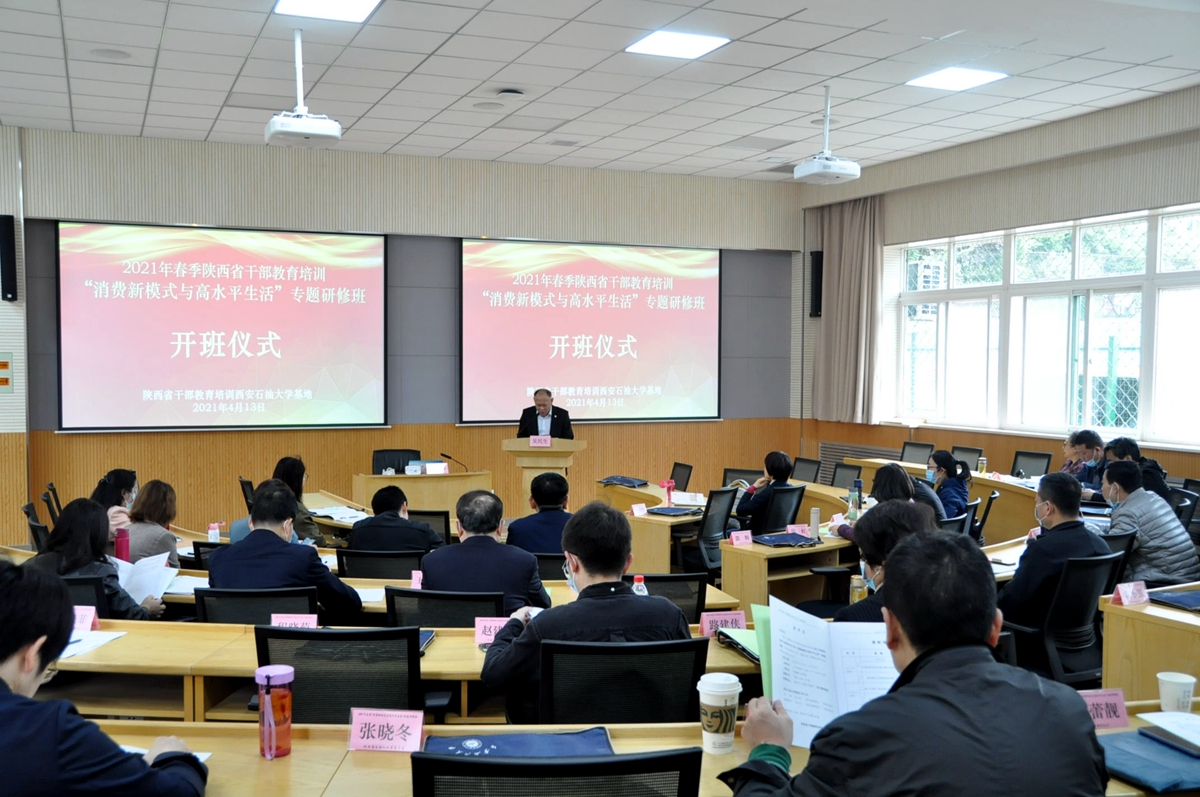 4月13日上午,2021年春季陕西省干部教育培训“消费新模式与高水平生活”专题研修班在beat365培训中心顺利开班。继续教育学院副院长吴民生参加开班仪式,并简要介绍了beat365发展沿革及培训基地工作开展情况。