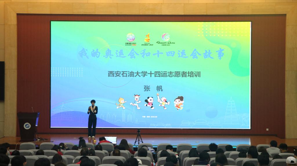 张帆老师以“我的奥运会和十四运故事”为题,重点围绕志愿精神、赛会服务技能和志愿者服务礼仪展开。张老师开场即以“曾经的志愿者学姐”的身份迅速拉近在场同学的距离,带动了会场气氛。随后,她着重回顾了自己学生生涯中数次参加国内国际大型活动志愿者的经历,并以自己2008年北京奥会赞助商转播陪同翻译志愿者的工作经历为例,从赛前知识储备、赛中工作感悟以及赛后自我提升三个方面与全体志愿者交流。她说,成为一名光荣的志愿者是“人生宝贵的财富,无悔青春的见证”。最后,她将专业的礼仪知识与大家分享,希望志愿者们争当优秀的“小秦宝”,为即将到来的十四运贡献青春力量!同学们纷纷表示通过这次培训对志愿活动的精神有了更深的理解,开拓了视野和思路,志愿者工作的热情更加高涨。