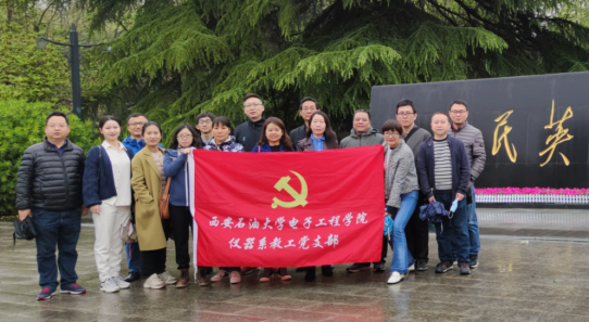 为了进一步学习贯彻落实党的十九大精神和习近平新时代中国特色社会主义思想,突出党史学习教育,增强党员的使命感和责任感,4月1日,“全国党建工作样板支部”电子工程学院仪器系党支部赴西安烈士陵园开展 “缅怀革命先烈,牢记党的嘱托”的清明祭扫活动。电子工程学院院长仵杰、副院长燕并男、仪器系党支部和部分教师代表参加了此次学习活动。