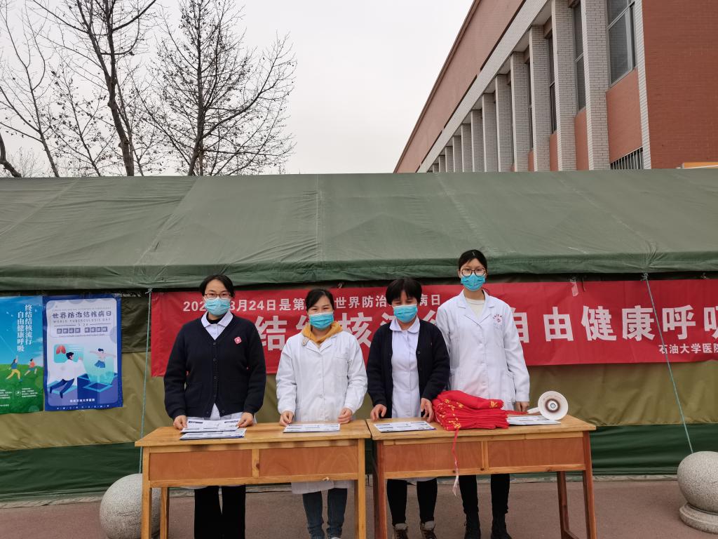 2021年3月24日是第26个“世界防治结核病日”,今年我国的宣传主题是:“终结结核流行 自由健康呼吸”。3月17日中午,校医院医务人员和部分学生志愿者在雁塔校区和鄠邑校区分别举办结核病防治知识宣传活动,此次活动旨在宣传结核病防治知识,提高师生预防疾病的意识。