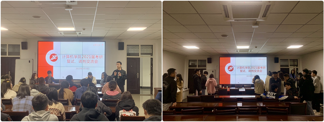 3月18日下午,计算机学院在鄠邑校区C1楼112会议室举办2021届毕业生考研复试、调剂交流会。交流会上邀请5位往届优秀毕业生分享考研经验,2017级辅导员姜楠主持,50余名考研学生参加了此次会议。
