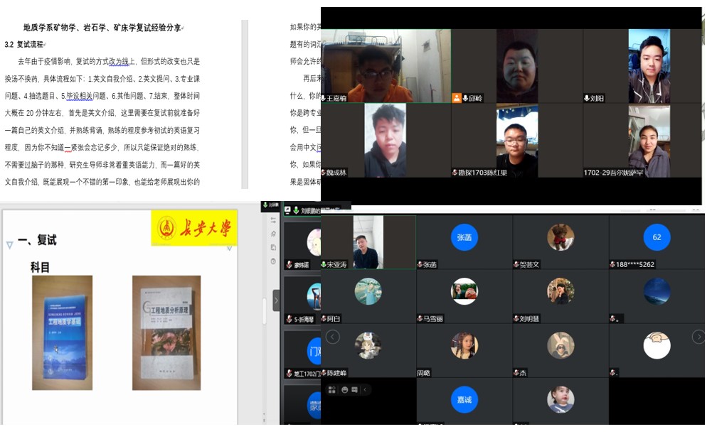 2021年3月15日至3月16日,地球科学与工程学院根据考研上线学生的目标院校,有针对性地组织了六场考研复试指导会,邀请考取相应学校的校友担任主讲嘉宾,2021届考研上线的80余名学生分院校参会。
