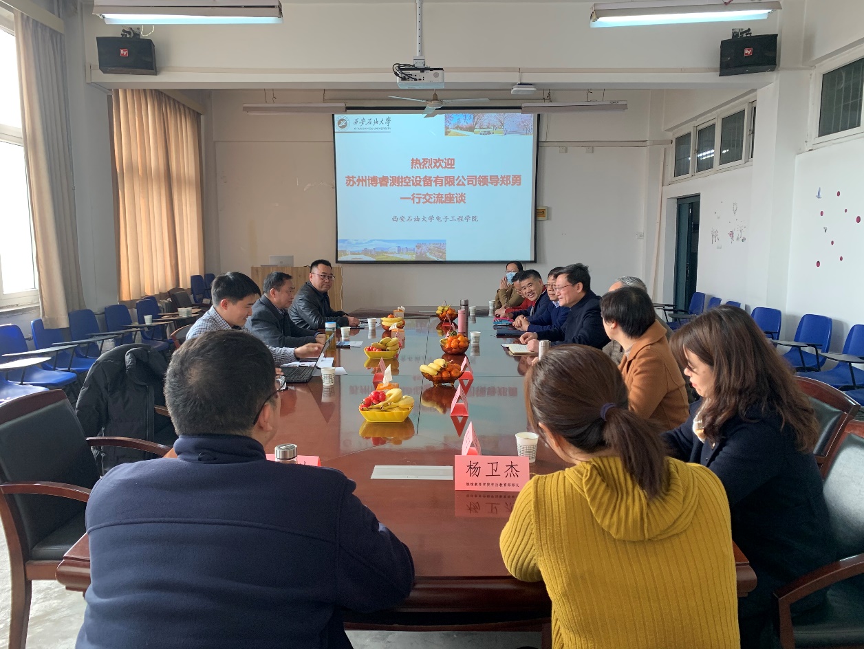 3月11日,苏州博睿测控设备有限公司董事长郑勇、电子工程学院优秀校友、苏州博睿测控设备有限公司总经理李伟华、副总经理华乐到电子工程学院交流座谈,学院党委书记何铖、院长仵杰、副书记毕轶慧、副院长燕并男、高国旺、仪器系副教授谢雁、电工电子教学中心主任吴银川热情接待。电子工程学院退休教授汉泽西、校党委巡察办公室主任覃彪、继续教育学院学历教育部部长杨卫杰应邀参加。会议由院党委副书记毕轶慧主持。