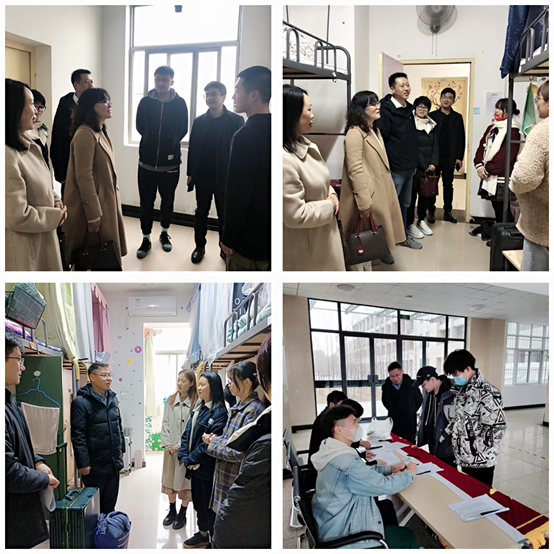 2月27、28日,学院党委书记田虹霞、副书记王业青、副院长刘辉、副院长陈武、学工办主任张帆和全体辅导员先后带队走访学生宿舍,看望返校学生,详细询问学生疫情期间在家学习生活情况,上学期的学业成绩和学习生活困难,本学期的阶段计划等,叮嘱学生们要严格执行学校疫情防控规定要求,切实做好疫情常态化下的学习生活安排。院领导对学生返校后学习生活提出了要求:一是务必做好晨检午检填报工作,严格遵守学校疫情常态化下的各项规章制度;二是加强体育锻炼,制定阶段性学习目标,精心谋划好自己的大学生活;三是严格执行学校宿舍管理规定,提高安全意识,做好个人防护,积极配合学校做好宿舍消杀工作。四是毕业班学生抓住春季就业机遇,积极主动参加各类招聘,考研学生认真准备复试,及时调整目标,计划出国(境)学生认真准备申请材料,尽早确定下一阶段的努力方向。