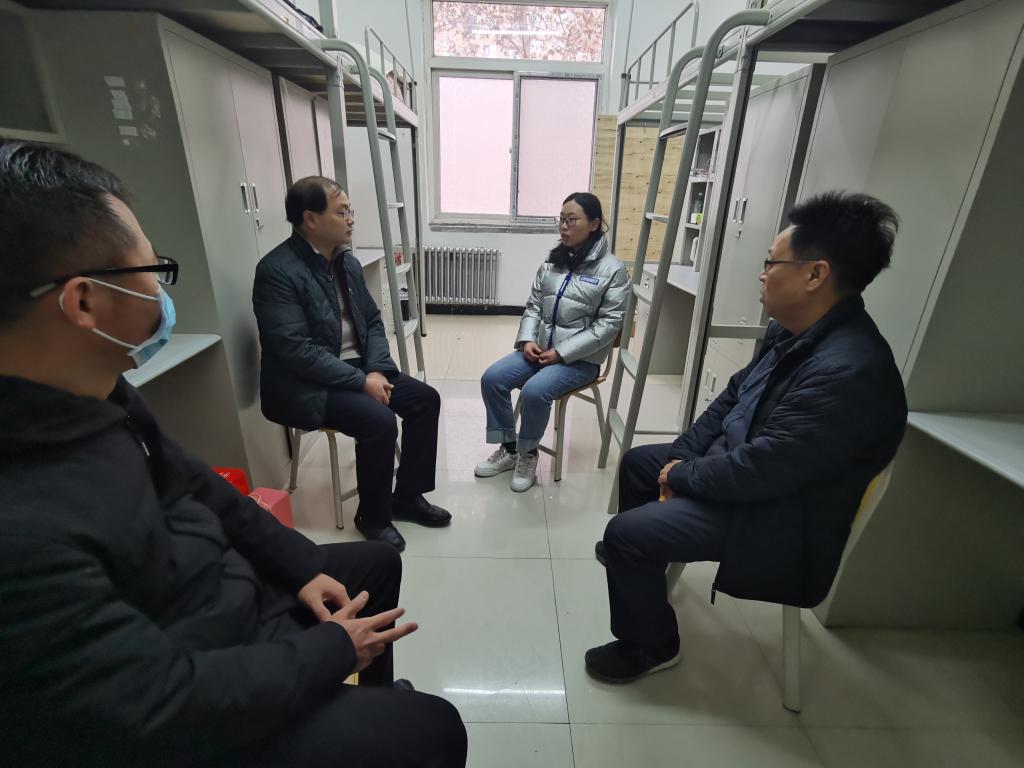 李强书记一行前往雁塔校区一号学生公寓看望马金采同学,详细了解了她假期留校学习、生活的实际需求,尤其对生活保障、学习活动、疫情防控等进行了深入交流。王魁生院长嘱咐她在做好个人防护的基础上,合理利用假期时间学习充电、提升自我。马金采同学随后与潘少伟老师就寒假期间的学习科研任务进行了沟通,同时表达了对学校和学院给予关心关怀的感激之情。