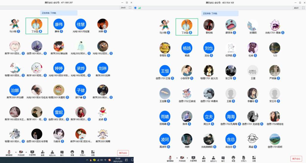 辅导员康伟对每日健康打卡、假期学习以及抓住疫情期间弯道超越的机会做了进一步叮嘱。林晔老师针对寒假作业要求、寒假社会实践报告撰写、课外科技学术作品竞赛准备做了更细一步讲解说明。