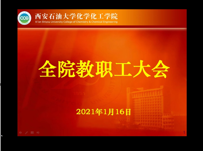 结合当前疫情防控形势需要,为推动学院各项工作顺利开展, 1月16日晚19:00,化学化工学院采用腾讯会议软件召开全院教职工大会,会议由学院党委书记司马文龙主持,学院106名教职工参加了此次大会。