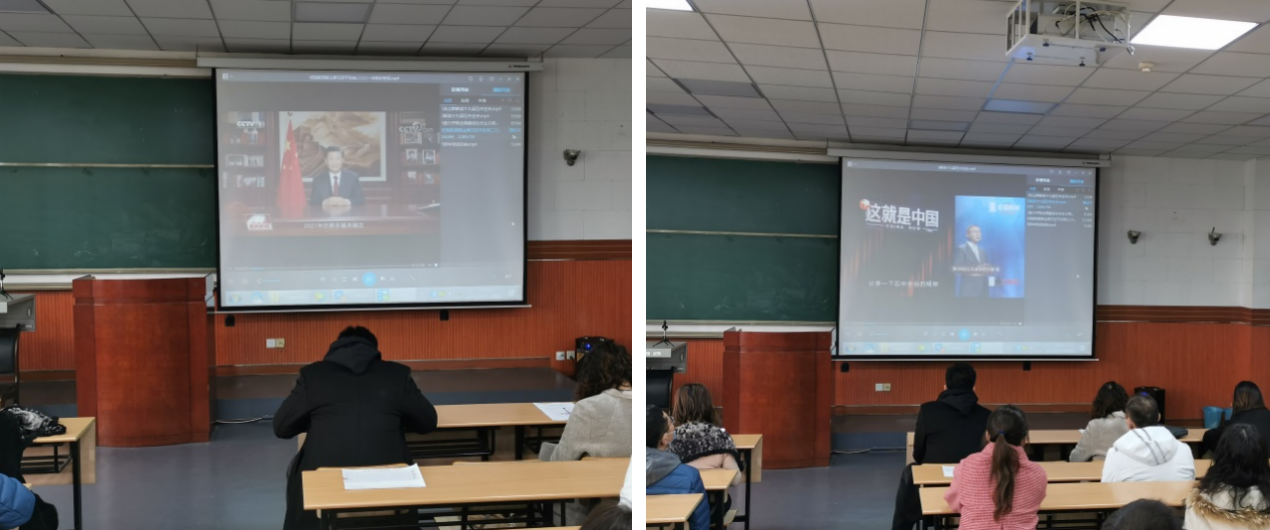 王书记带领全体与会教职工集体观看了国家主席习近平的新年贺词以及新年贺词在全国各地引起强烈反响的视频,集体观看了专家张立群解读五中全会、《这就是中国》节目中有关五中全会精神的解读以及陕西各界深入学习贯彻十九届五中全会精神视频。随后,副院长李俊亭就国家社科基金的申报和研究生管理工作做了汇报。