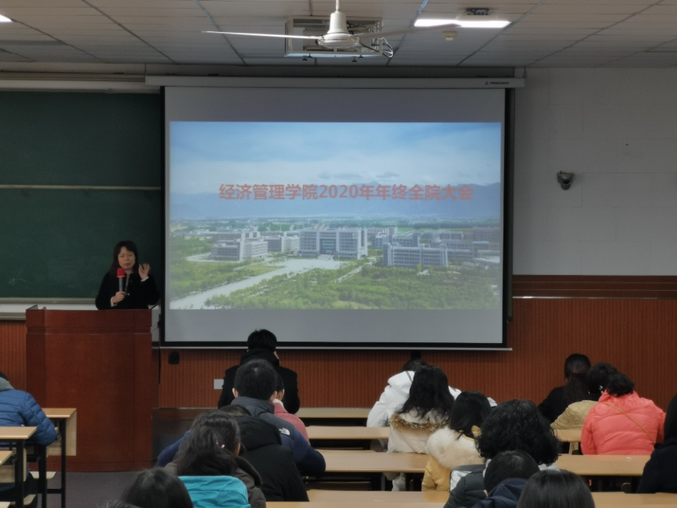 院长王君萍作2020年学院财务报告和工作报告。主要从财务、科研、教学、学科评估、人才引进、学生工作、扶贫与工会工作、校友工作等方面,详细介绍了经济管理学院2020年所取得的成绩和存在的不足,并提出新一年的奋斗目标。启动了学院全员支持就业行动方案,方案正在调研和起草过程中,拟通过全院全员参与、与学校各职能处室进一步积极联合,共同支持学院的就业工作,不断提升就业质量。