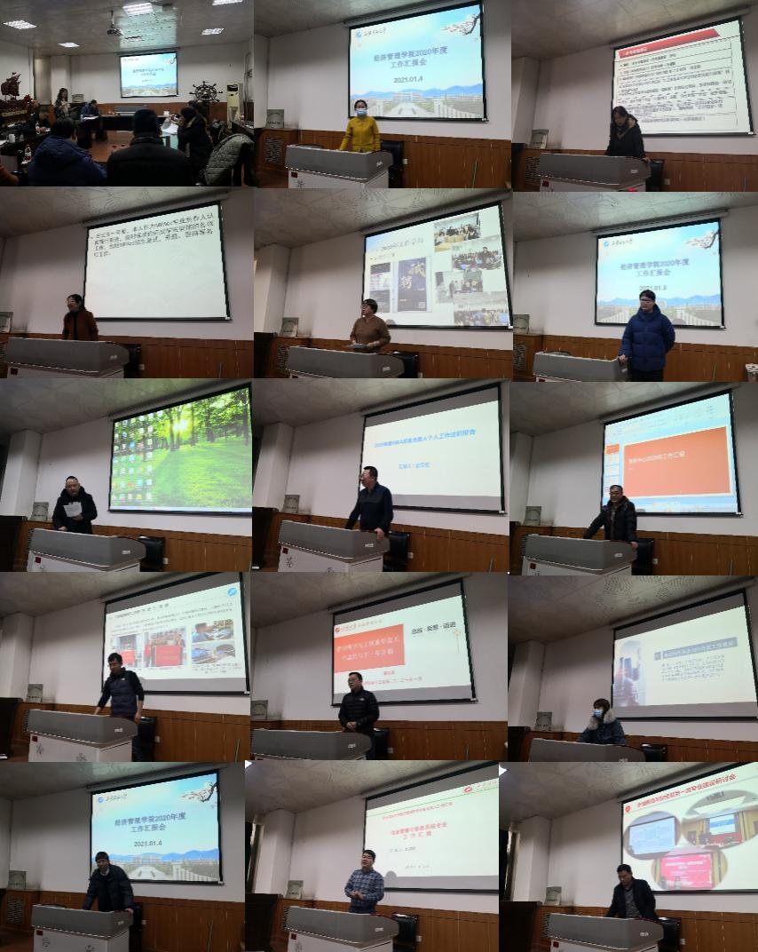 经济管理学院2021年1月4日下午举行2020年度工作汇报会。学院全体院领导、部分教授委员会委员、全体学科带头人、专业负责人、系主任、项目负责人、案例中心负责人等共26人参加了会议。