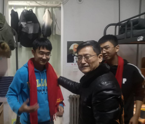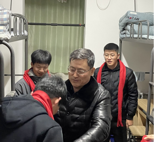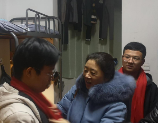 在走访慰问过程中,何铖书记逐一走进假期留校学生宿舍,向同学们赠送了学院定制的“2021 牛劲足 情系电工勤助梦”红色围巾,询问了留校学生近期学习生活情况,了解了同学们宿舍关系是否融洽,是否与家人通话联系等问题。何铖书记提醒同学们疫情防控不可掉以轻心,出门一定要做好防护,佩戴口罩,宿舍常通风,不去人员密集的场所。期末考试即将到来,同学们应积极备考,争取在本学期取得好成绩。