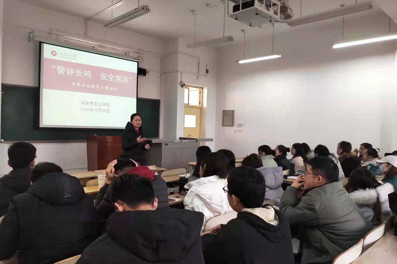 按照《关于在研究生中开展冬季安全教育的通知》(西石大研工函〔2020〕13号)要求,为切实加强我院研究生冬季安全教育管理,进一步强化学生的安全意识,教育、引导学生自觉遵守学校各项规章制度,马克思主义学院将2020年11月-12月定为“研究生冬季安全教育月”,开展了一系列主题活动,取得了一定成效。