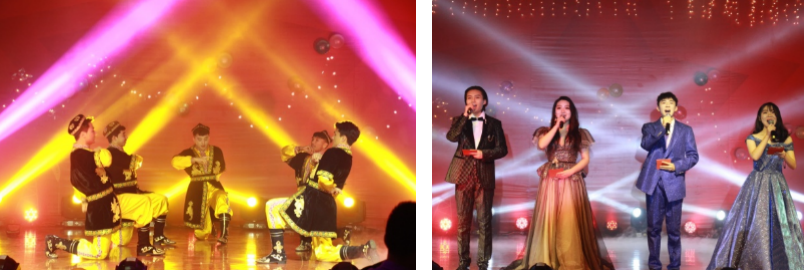 本次晚会开场的表演为新疆舞,活力四射的舞蹈点燃了全场观众的激情。随后由四位主持人宣布比赛正式开始。