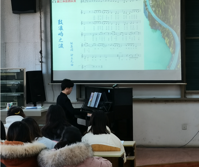 12月10日上午,音乐系薛安玲老师在2号教学楼1506教室举办《副三和弦的运用》公开课,音乐系理论教研室全体教师观摩了此次公开课。