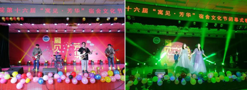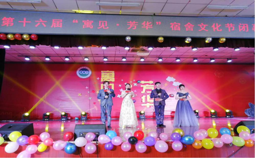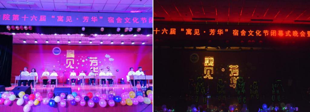 闭幕式晚会暨表彰大会在洋溢着青春与活力的舞蹈中拉开序幕,整场演出包括“红色心·华夏魂”“遇芳华·正青春”“展未来·共筑梦”三个篇章。合唱《我和我的祖国》、诗朗诵《远方的前路》表达了化工学子高远志向和坚定信念;小品《乌龙快递》《我们有梦想》,讲述了抗疫期间白衣天使的无私大爱,呼吁理解关怀,鼓励同学们在追梦道路上不断前进;《安塞腰鼓》铿锵的鼓点,直击心扉,鼓声之中满载热情,道出了人民群众对美好生活的向往;杯子舞《稻香》、荧光舞《舞动青春》、乐队演奏《愿爱无悔》、T台秀《Encounter》、各族学子歌曲串烧《伴雪摘星》、光影剧《匆匆四年》等节目,展现了当代大学生的青春与热情,抒发了同学们青春无悔的激情和面对前路挫折的勇气与决心;魔术表演《奇迹再现》让在座观众眼前一亮,创意和创新同在;师生合唱《再回首》,学院团委、学生会与各年级辅导员同台演出,道不尽青春葱茏岁月,共勉励珍惜大学时光。