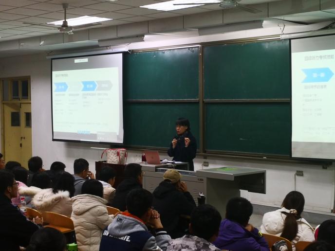 讲座中,教师结合实例将学生们的热情充分调动起来,从专业角度对英语的学习方法进行整合归纳讲解。同学们积极发言,现场气氛活跃。讲座临近结束时,学生们就他们在备考四级考试过程中碰到的困惑与问题与主讲教师进行了简单但富有成效的交流。