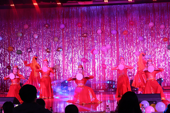晚会表演环节中,校工会舞蹈队为大家表演了精彩的新疆民族舞蹈《欢乐铃鼓》,美轮美奂。宜涌涛主管代表四川越盛长庆分公司为大家献唱了陕北民歌《一搭搭里》,高亢激昂,校工会和企业代表的精彩节目一度将晚会推向高潮。