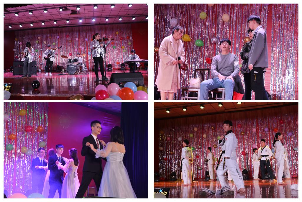 符点八分音乐社、粉墨人生话剧社、跆拳道协会、团委学生会骨干以及2020级本科新生为大家献上了高潮迭起、异彩纷呈的表演。既有青春洋溢的吉他弹唱,也有庄重典雅的华尔兹;既有感人落泪的情景剧,也有石工特色的影子剧;既有活力四射、动感十足的舞蹈,也有抑扬顿挫、高昂激越的朗诵,小品、相声、小人舞等爆笑节目穿插其中,晚会形式丰富,底蕴十足。