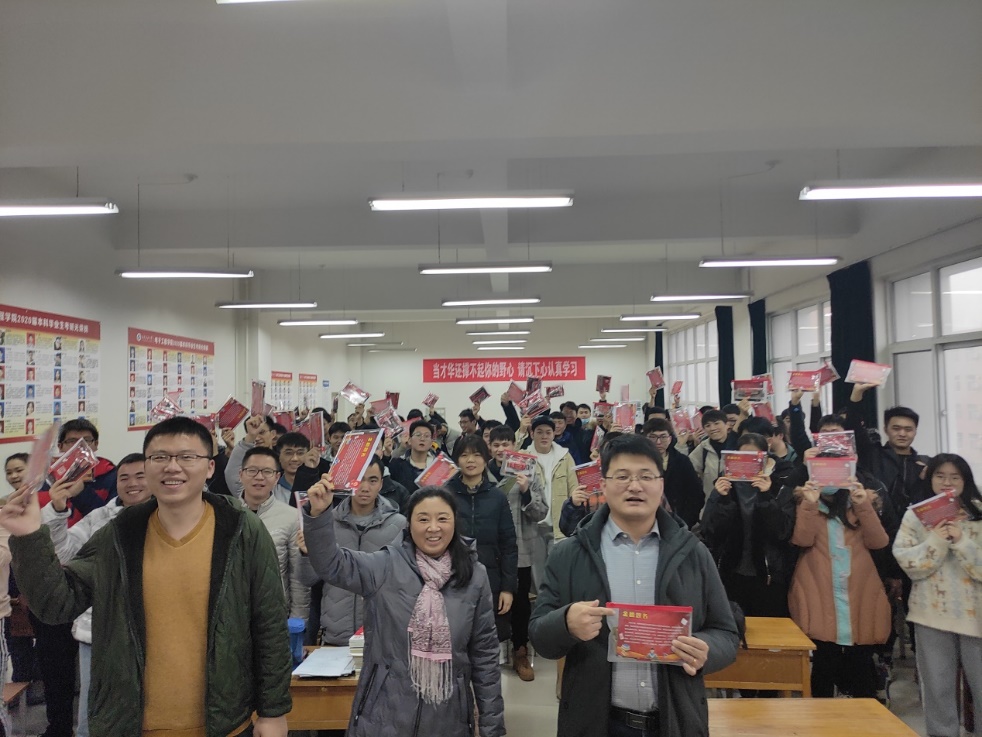接下来,三位老师给同学们分发了提前准备的考研加油包,其中包括考试必备套装文具、考试注意事项和学院给同学们的寄语。最后,大家在一片“金榜题名”的祝福中合影留念。活动结束后,同学们纷纷表示,在这难熬的日子里,能收到来自学院的加油打气,感到格外的温暖。