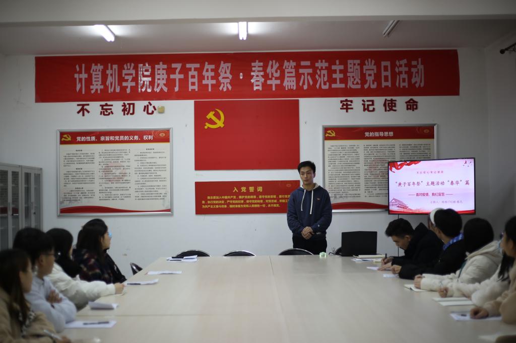 12月2日晚,计算机学院在鄠邑校区17号楼党员活动室举办“庚子百年祭·春华篇”示范主题党日活动,网络、数媒专业学生党支部全体党员参加。