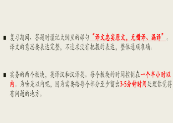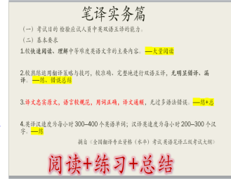 首先,解珂同学分享了笔译实务考试的经验。她从英语三笔考试大纲要求切入,强调了阅读、练习、总结的重要性。接着,她从心理准备、复习准备、冲刺准备、其他准备、辅助工具等五个方面详细地为同学们讲述了考前备战经验。